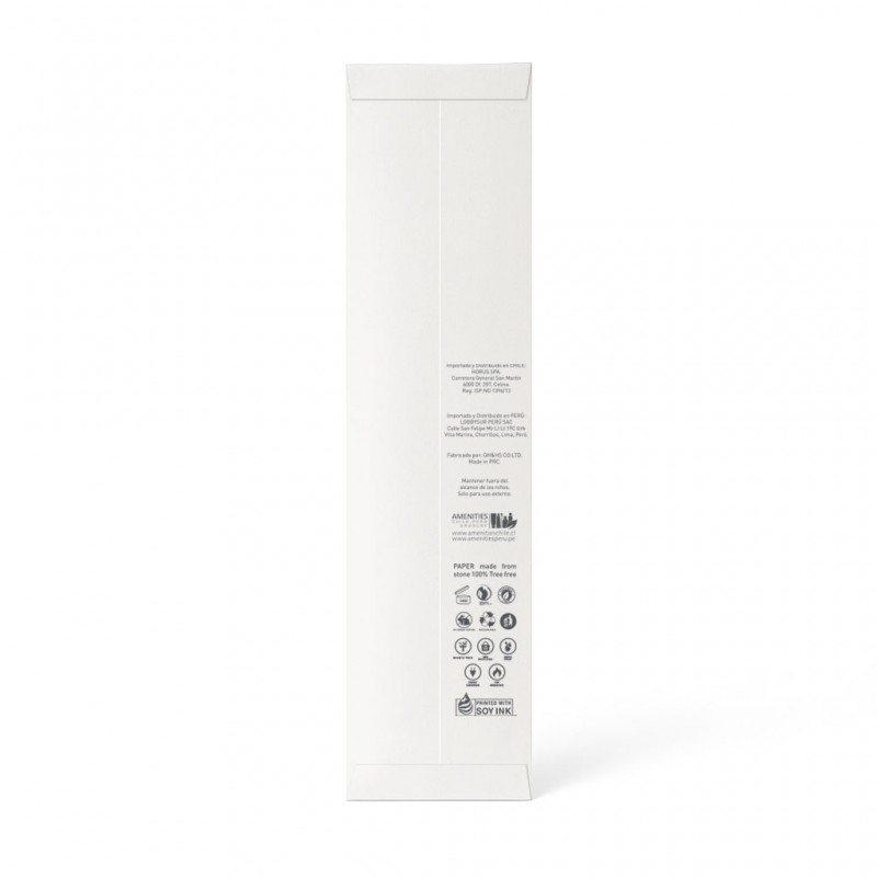 Peine de bioplástico Wheat Straw de 16cm de largo, presentado en Sachet de Stone Paper de 20x5cm impreso con tinta a base de soya.
